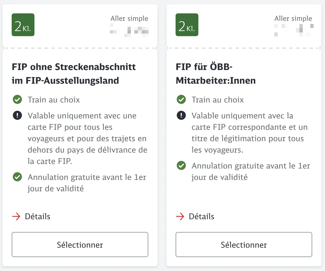 Pour les billets FIP 50, la gare de départ et d’arrivée doivent être dans des réseaux différents. Cela vaut aussi pour les trajets avec FIP Coupon.